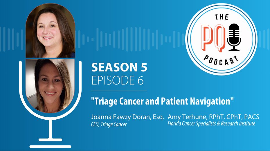 This week on The PQI Podcast, Joanna Fawzy Doran, Esq., and Amy Terhune, RPhT, CPhT, PACS, discuss patient navigation and the work of Triage Cancer®, a national nonprofit organization providing free education on practical and legal issues that impact individuals diagnosed with cancer and their caregivers through events, materials, and resources.