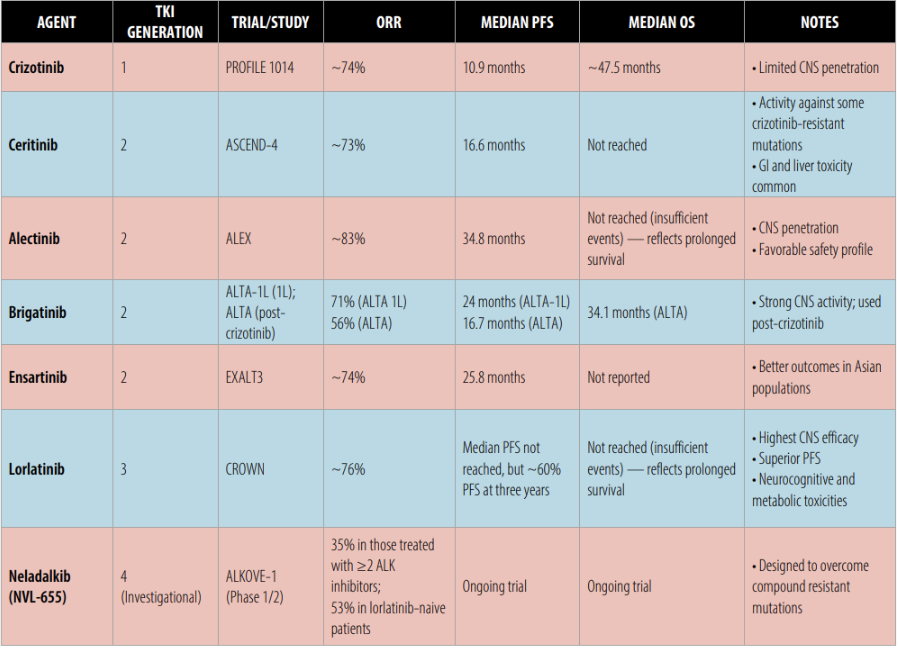 The treatment landscape for ALK-positive NSCLC has evolved significantly over the past decade, with successive generations of ALK TKIs offering improved efficacy, CNS penetration and coverage of resistance mutations.