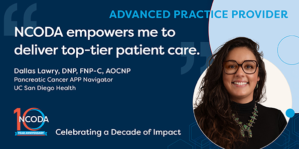 As NCODA celebrates 10 years of advancing oncology care, we are honored to highlight members whose work embodies compassion and leadership. This spotlight features Dallas Rose Lawry, DNP, FNP-C, AOCNP, of UC San Diego. Her journey, shaped by both personal experience and professional dedication, reflects the strength and empathy that define NCODA’s community.