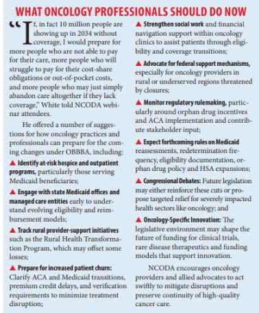 On the plus side, the OBBBA includes a 2.5% payment update for providers in 2026, White noted, “But for oncology, it’s a mixed bag. It depends on what specialty you’re in, based on how the underlying statute governs who is reimbursed for what.”