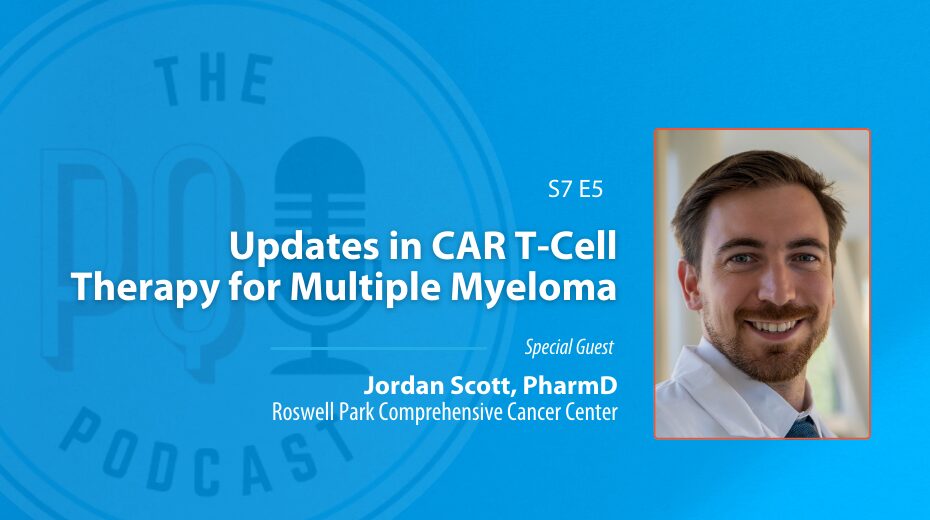 In this episode, Jordan Scott, PharmD, from Roswell Park Comprehensive Cancer Center, shares insights into the latest advancements in CAR T-cell therapy for Multiple Myeloma.