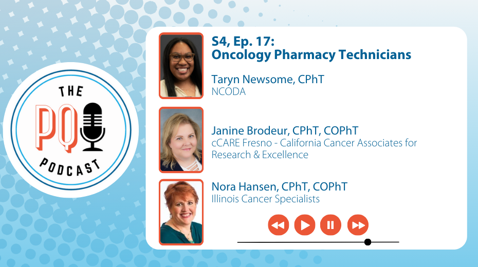 In this episode of The PQI Podcast, we sit down with experienced oncology pharmacy technicians Janine Brodeur, CPhT, COPhT, Nora Hansen, CPhT, COPhT, and Taryn Newsome, CPhT!