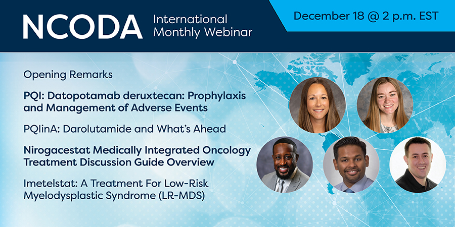 PQIinA: Darolutamide (NUBEQA®) and What’s Ahead – Brandon L. Keith, PharmD, DPLA, BCACP (GW Medicine) will provide an overview of darolutamide explores its role in prostate cancer care and what clinicians should anticipate as indications evolve. The session introduces how NCODA’s PQIinA framework supports safe, streamlined dispensing and patient monitoring for this emerging therapy.