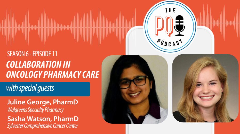On this week’s episode of The PQI Podcast, we sit down with Juline George, PharmD, and Sasha Watson, PharmD, to explore the significance of pharmacist collaboration in oncology and its impact on optimizing patient care.