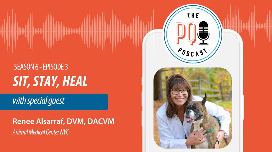 In this episode of The PQI Podcast, we sit down with Renee Alsarraf, DVM, DACVIM, to discuss her inspiring journey detailed in the acclaimed book Sit, Stay, Heal: What Dogs Can Teach Us About Living Well, where she intertwines her experiences as a veterinary oncologist and her personal battle with cancer.