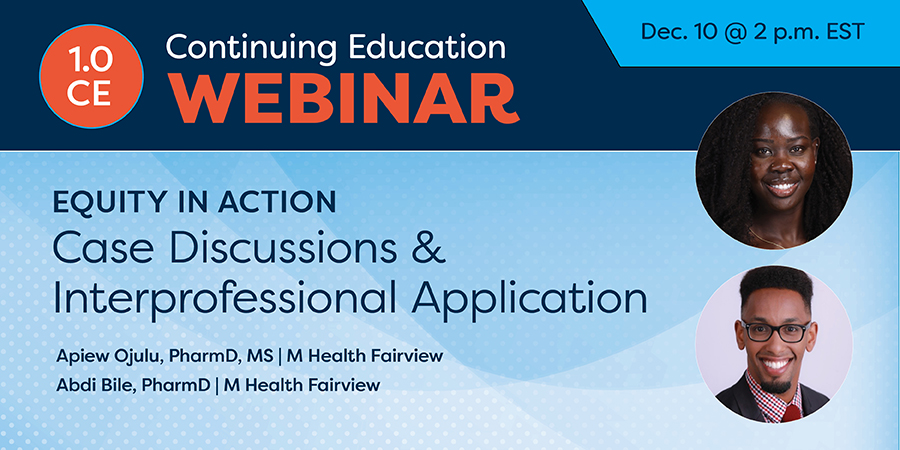 1.0 hour of CE credit is available for pharmacists and technicians.